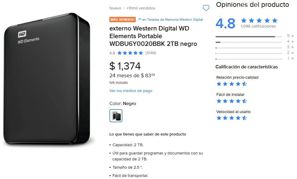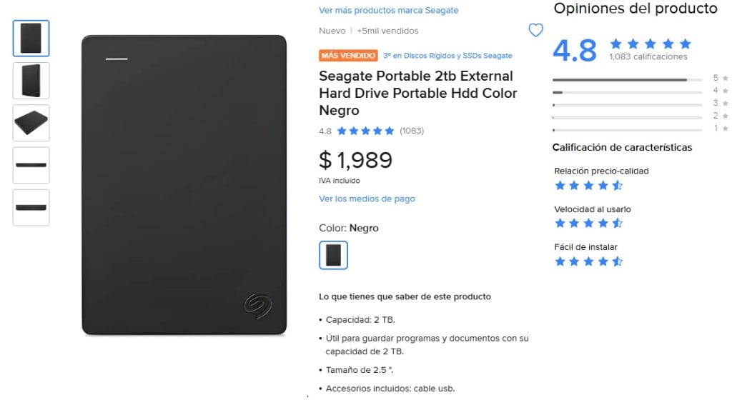 • A pesar de esto… tiene solo 1TB y cuesta solo $324 MXN menos que el WD de 2TB..