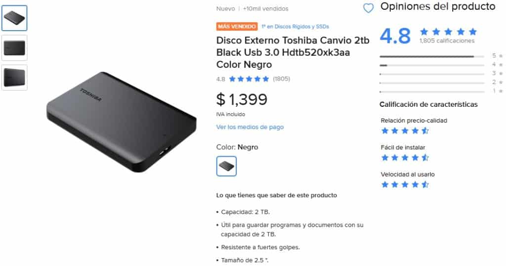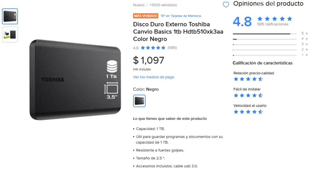 💡 Si vas a comprar, el Toshiba Canvio 2TB a $1,399 MXN (hasta la actualizacion de este post) es la elección inteligente: mismo espacio que el WD, mejor precio, y cero riesgos.